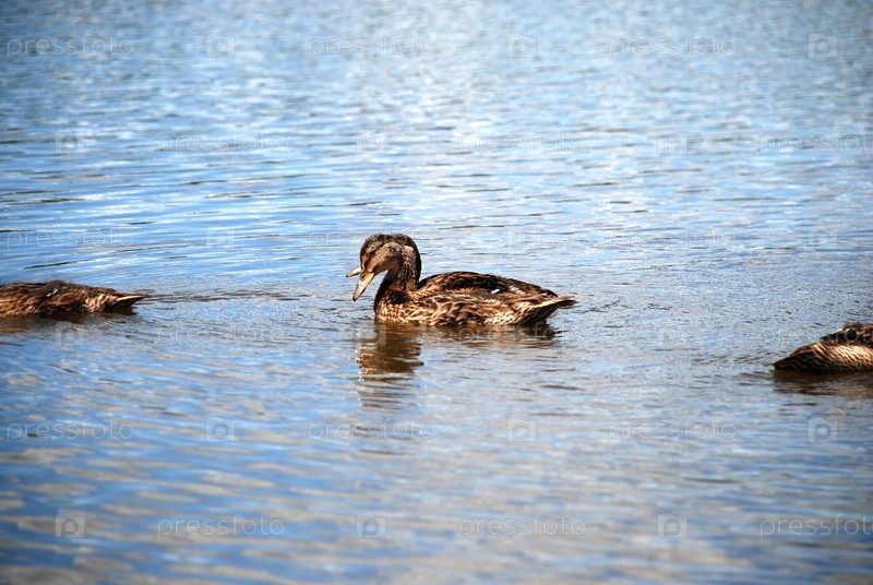 Дикие утки в воде озера