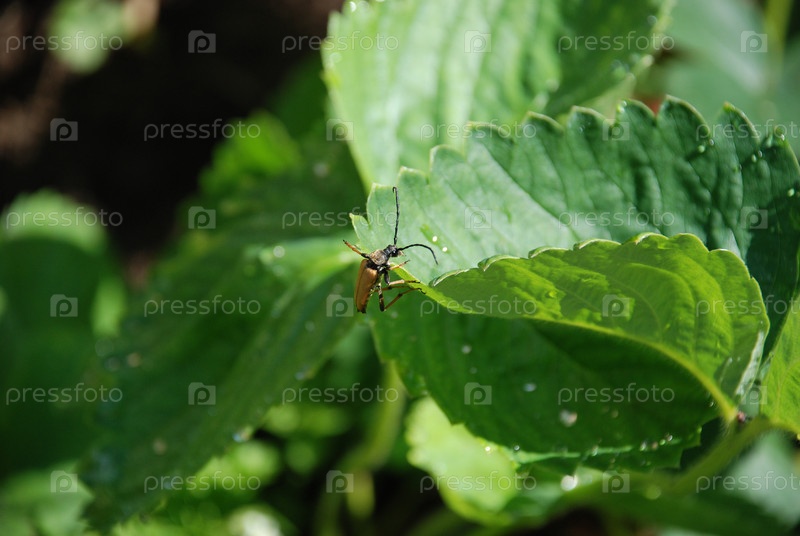 Чернонокожая лептура на малиновом листе