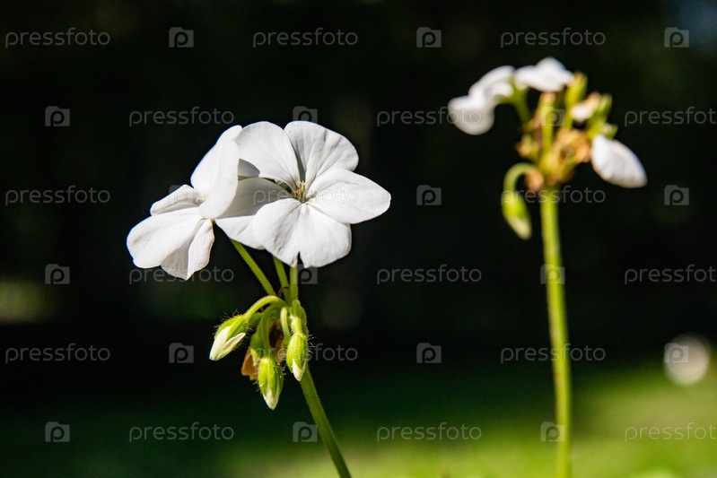 Белые цветы гераниума на зеленом фоне