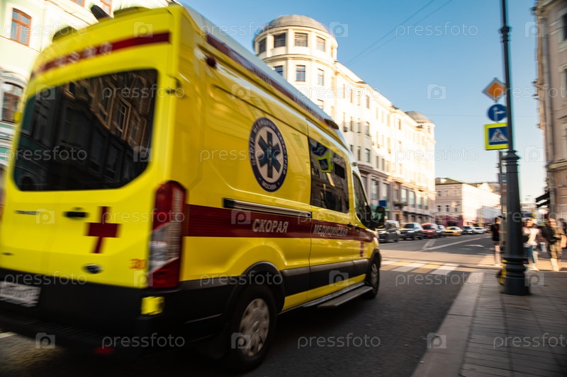 Желтая скорая на городской улице