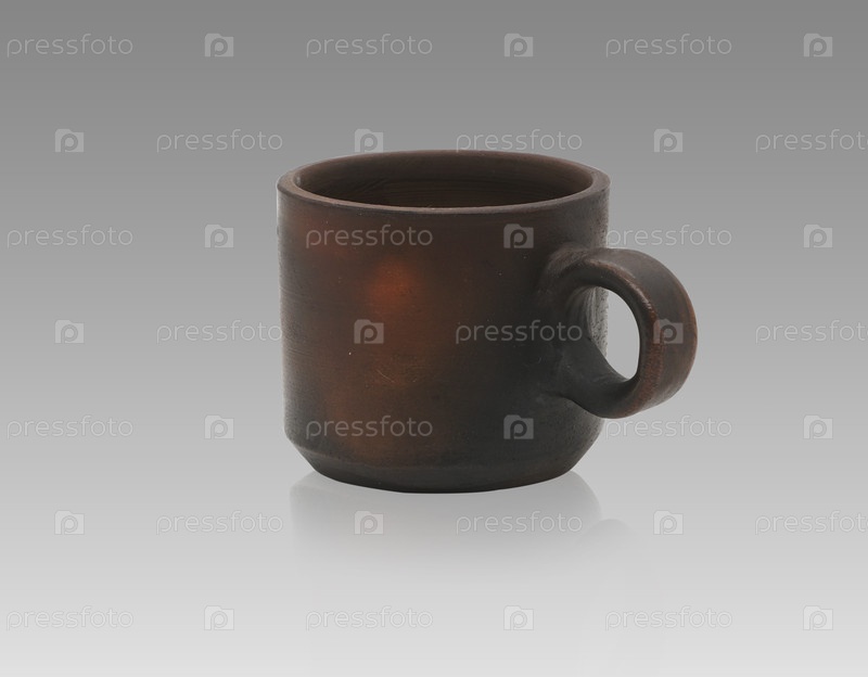 Керамический стакан на градиентном сером фоне и отражающей поверхности