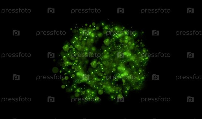 Зеленые светящиеся частицы создают абстрактный эффект боке
