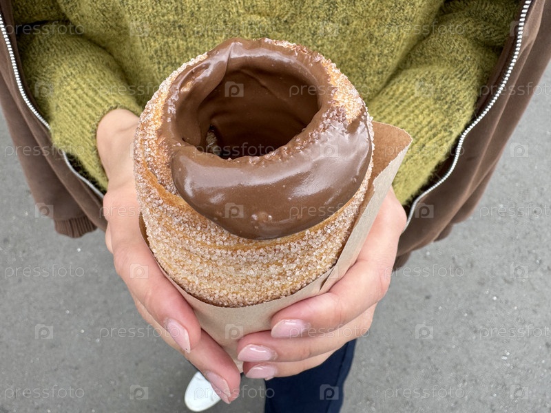 Сладкое сокровище с нутеллой в руках девушки летом