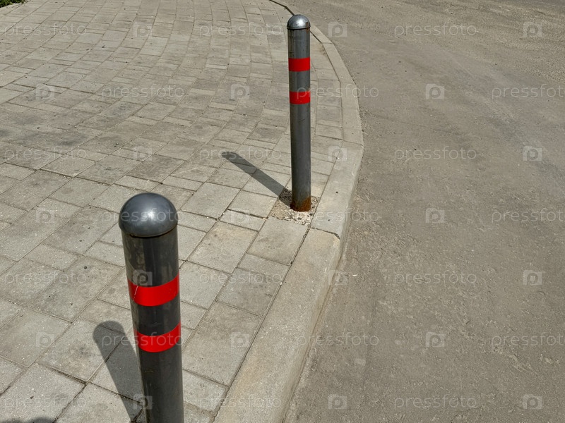 Парковочные столбы серовато-красные в теплый летний день