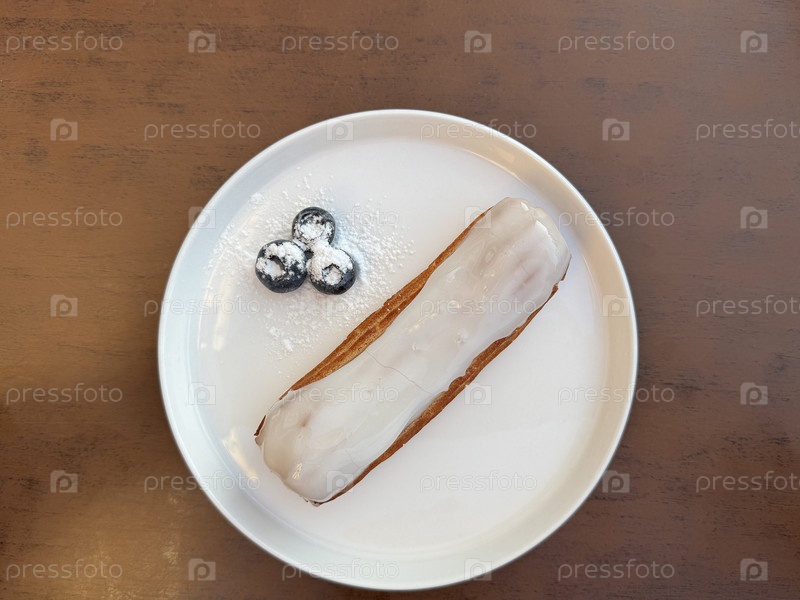 Кремовый аппетитный эклер для десерта в летнем кафе