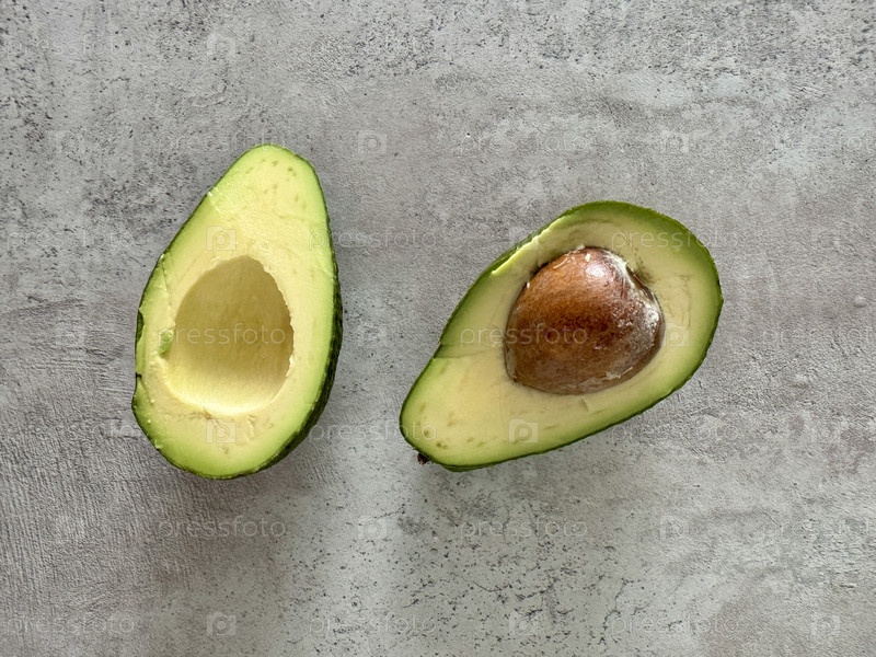 Сочный спелый авокадо разрезают пополам на монохромном фоне