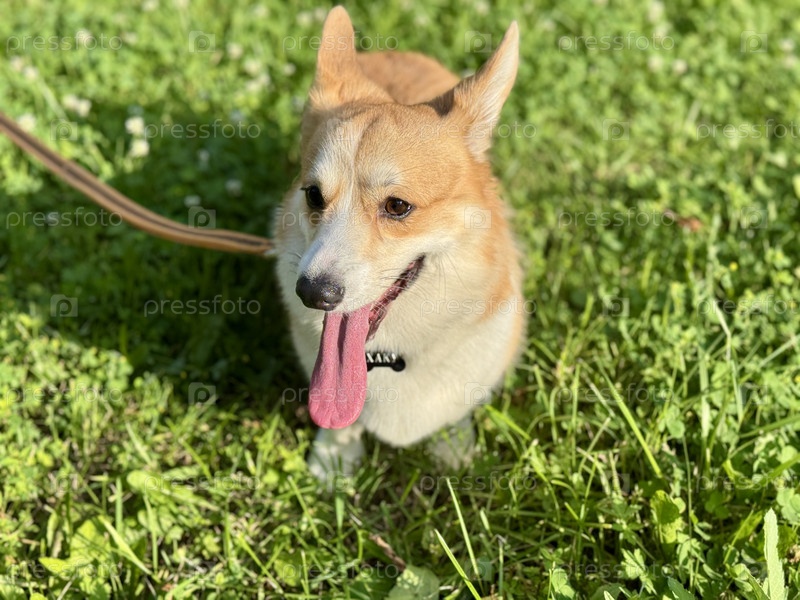 Счастливые красные корги на летней прогулке