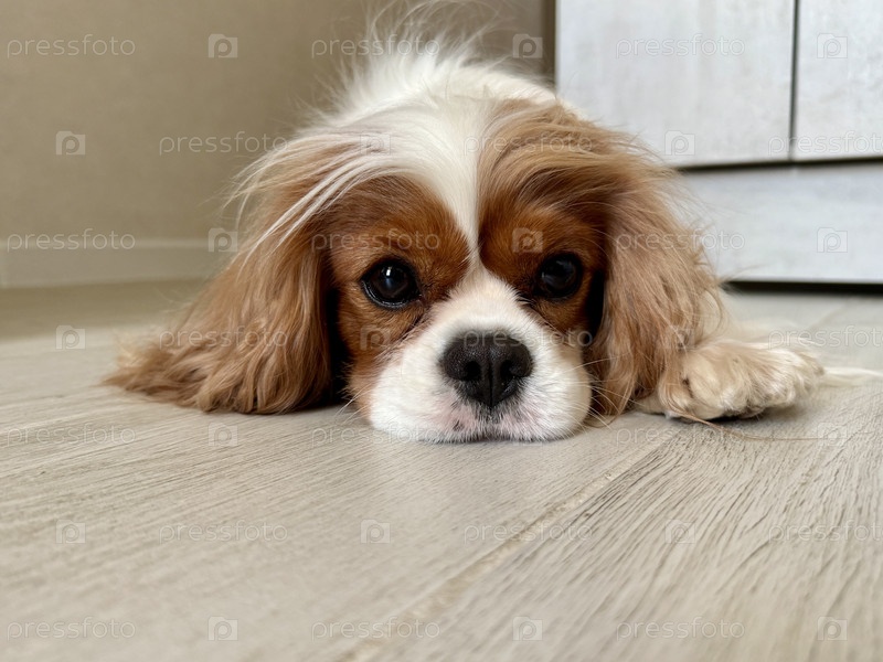 Король Чарльз-Спаниель, английский игрушечный спаниель, грустный дома один