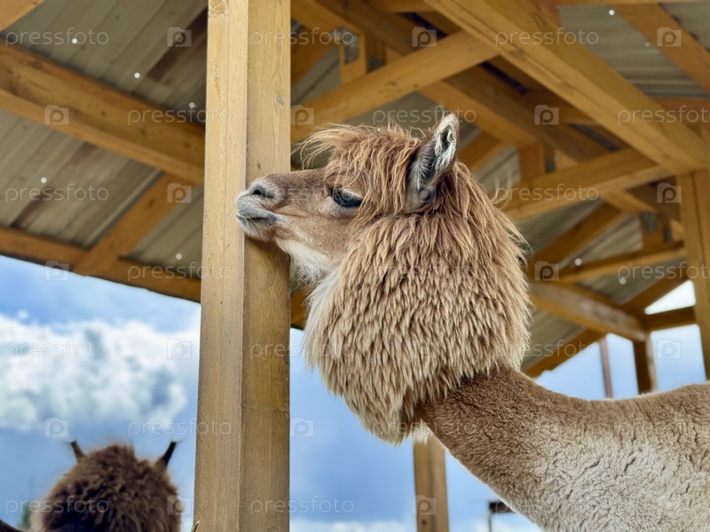 Альпака на ферме в летний день