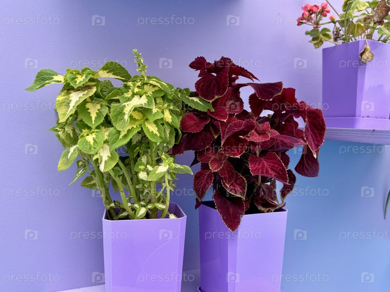 Растение Koleus в горшке на лиловом фоне