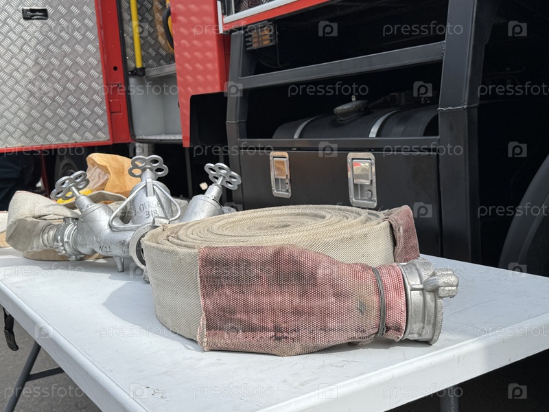 Водяной пожарный шланг лежит