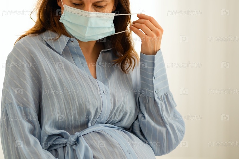 Будущая мать носит защитную маску во время восстановления в постели.Важные меры по борьбе с инфекциями в чувствительный период беременности