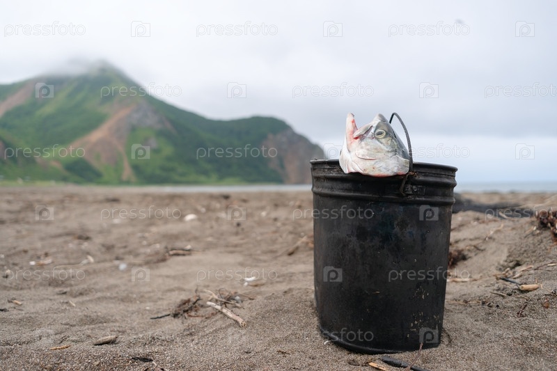 Недавно пойманный розовый лосось Кукпот с видом на горный океан