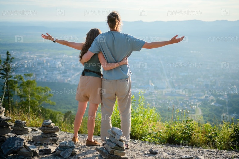 Взгляд на ходящую пару, обнимающуюся в Scenic Overlook