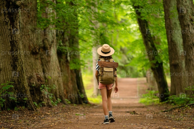 Девушка гуляет одна в летнем лесу