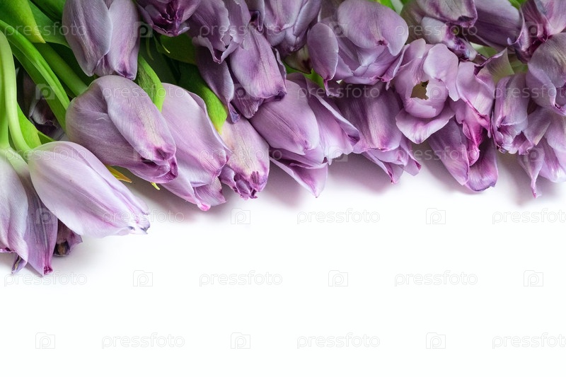 Лиловые тюльпаны с цветочной границей на белом