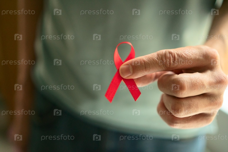 Красная лента поддержки ВИЧ в руке человека