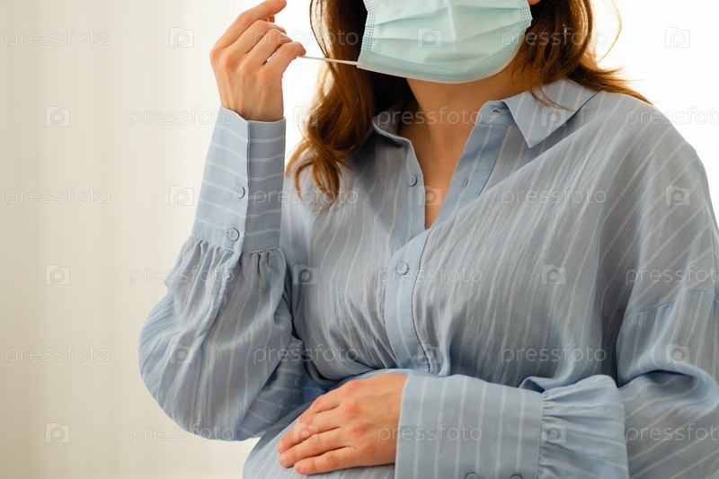 Беременная женщина в медицинской маске