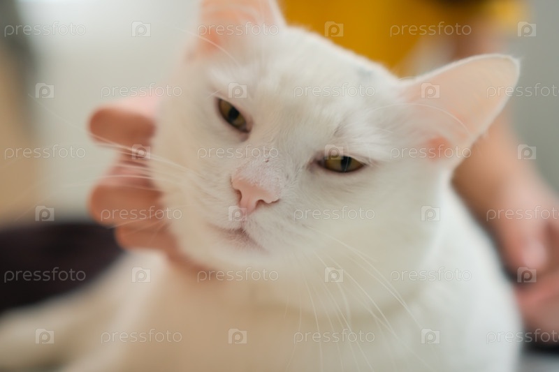 Портрет улыбающегося подростка, нежно обнимающего свою ярко белую кошачью подругу