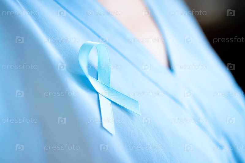Медицинский работник с символом синей ленты