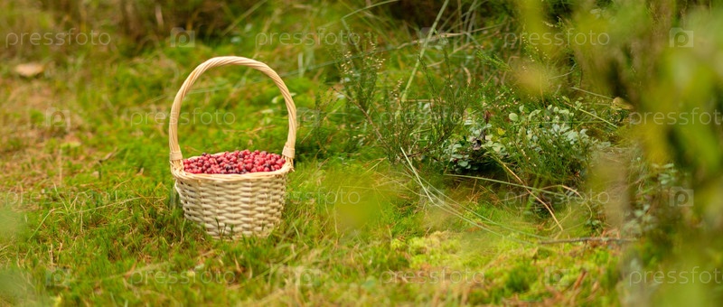 Полная корзина клюквенных в лесу горизонтальный осенний вид