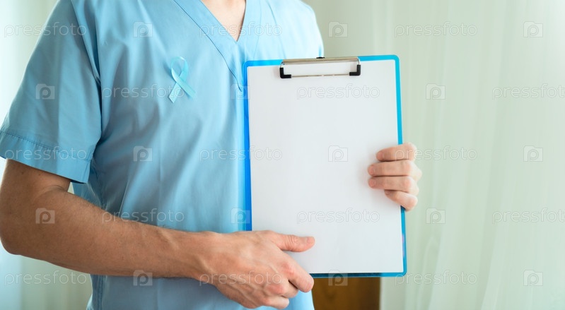 Медицинский работник с синей атласной лентой и пустым буфером осведомленности