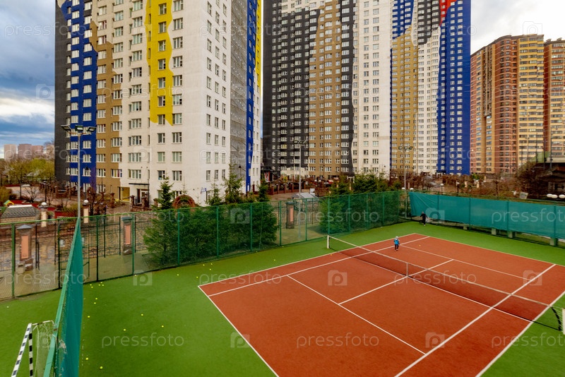 Теннисный корт в современном жилом комплексе