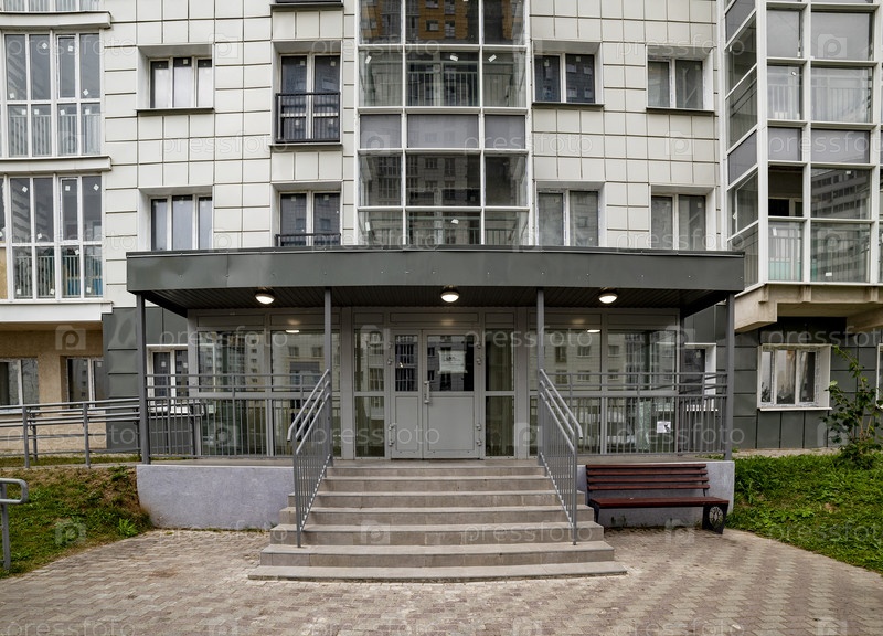 Вход в современное многоэтажное жилое здание