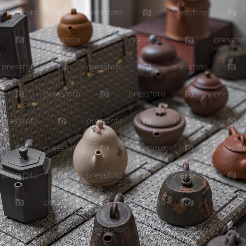 Изысканная коллекция чайников из ремесла прекрасно расположена в теплом и очаровательном современном пространстве