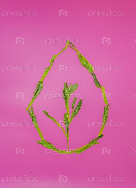 Художественный и творческий дизайн зеленого листа на ярко-розовом фоне