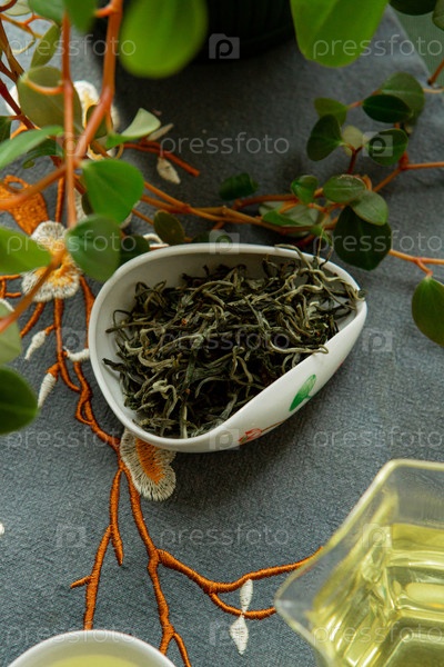 Нежные и свежие зеленые чайные листья, приготовленные в красивой раме для удовольствия