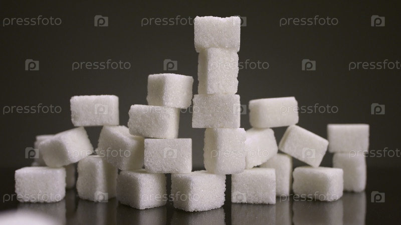 Куча кубиков сахара на изолированном фоне.Кубики сахара варьируются по количеству на изолированном фоне.Сладкости в больших количествах вредны для здоровья.Сахар и сладости - зависимость 21-го века