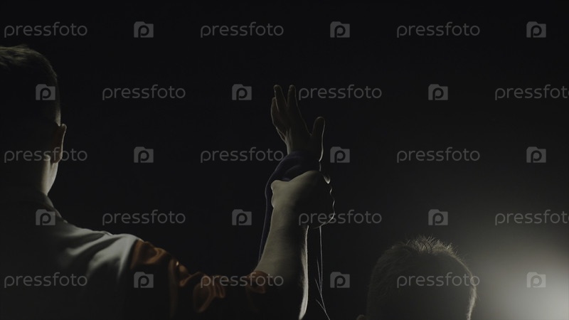 Сзади изображение судьи, который поднимает руку победителю