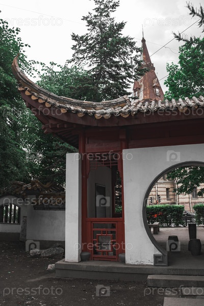 Почувствуйте красоту спокойной азиатской садовой архитектуры с ее традиционным дизайном крыши