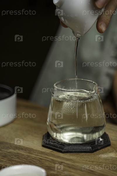 В спокойной обстановке горячую воду наливают в красиво сделанную стеклянную чашку, идеально подходящую для любителей чая