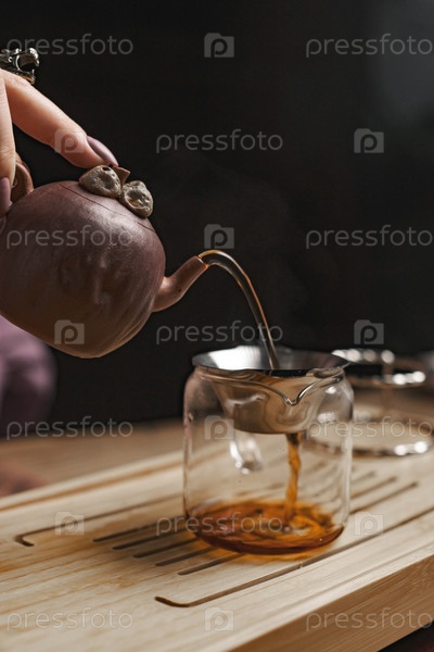 Ремесленный опыт питья чая с красиво выполненным элегантным чайником и стеклянной кружкой