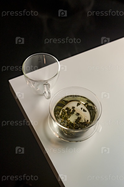 Элегантное представление зеленого чая на минималистическом столе