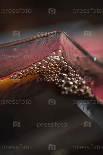 Детальный крупный план расплавленного металла во время процесса изготовления, подчеркивая сложные текстуры и детали
