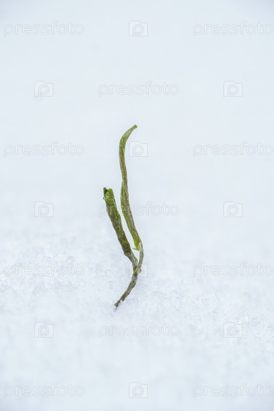 Новая зеленая стрельба в снежном ландшафте означает устойчивость и обновление жизни