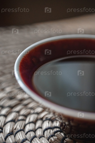 Близкий снимок кофейной чашки, подчеркивающей ее насыщенный коричневый цвет против текстурированного фона, повышающего её красоту