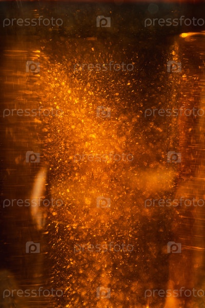 Абстрактное изображение, которое показывает динамические пузыри и отражения света в зрелищной золотистой атмосфере