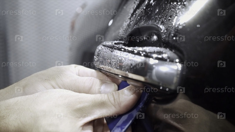 тщательная чистка дверной ручки дорогостоящего автомобиля профессиональной автомойки