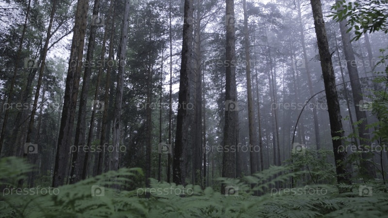Удивительный мистический лес с туманом Сцена