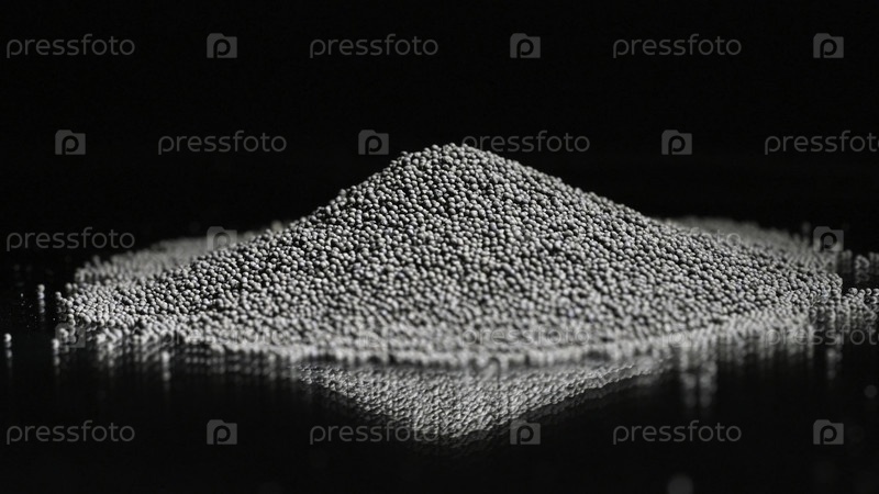 Обходящаяся куча камней изолирована на черном фоне. Резервные кадры. Покрывайте крошечные чёрные кусочки гравия, вращающиеся, лежащие на отражающей поверхности