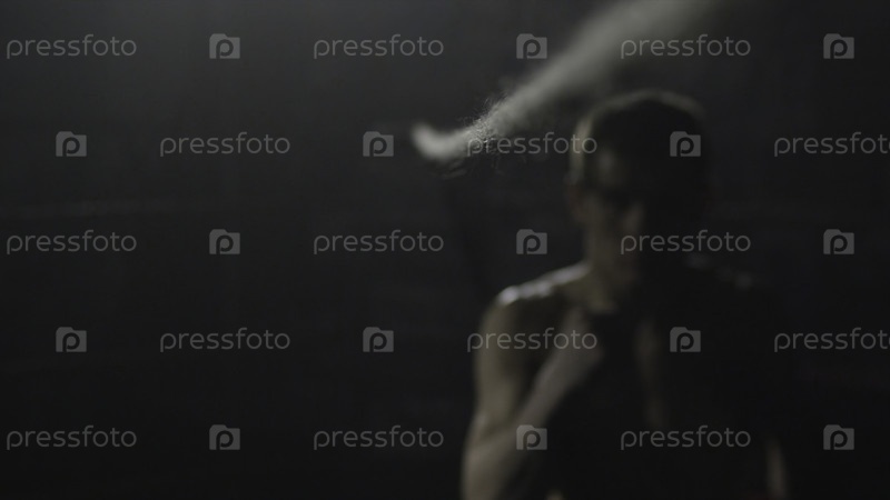 Боксер выполняет упражнения с веревкой для наклонности и погружения