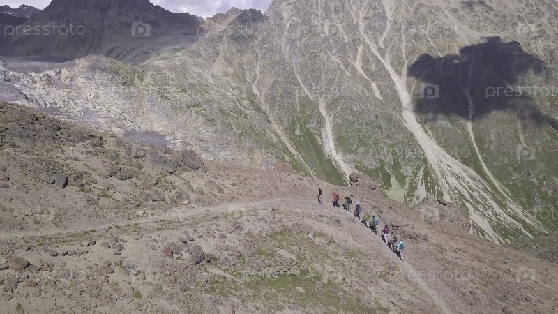 Концепция путешествия и спортивного образа жизни, группа туристов ходят на вершину горы