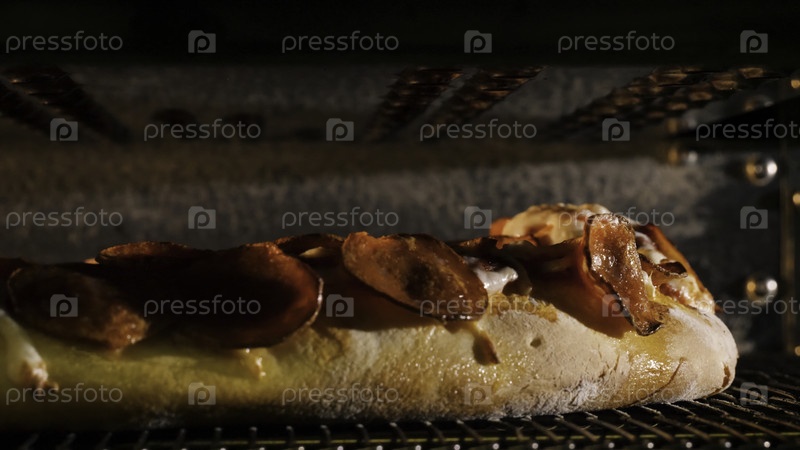 Пицца - это крупный план с перцем и сыром в духовке. Рамка. Традиционное приготовление пиццы в духовке