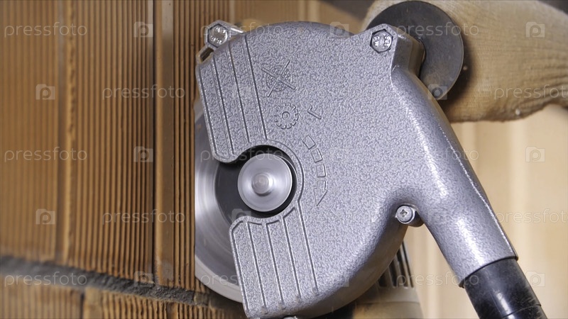 Закрытие бензинового кирпича привело к резке кирпичного блока.Профессиональная пила для резания кирпичей