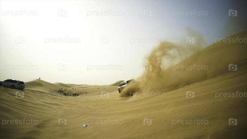 Автомобиль 4х4 останавливается на улице Сток.Песчаная дюна внедорожник