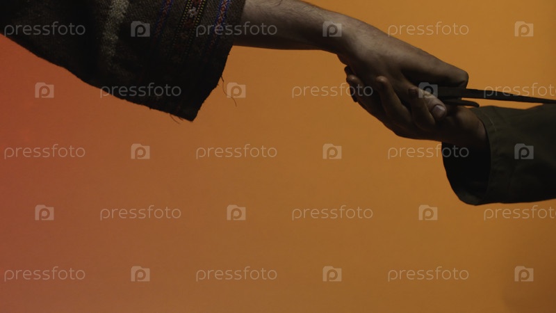 Концепция бартера и доверия: человеческая рука, передающая инструмент в руки другого